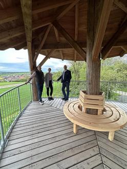 Nachdem die massiven Holzbänke und auch ein sehr aufwendig gearbeiteter Stehtisch inmitten der Aussichtsplattform fertiggestellt waren, bot Spahn kurzerhand an, aus dem noch übrigen Restholz auch für das Oberdeck der Plattform noch eine Sitzbank zu gestalten. Gesagt, getan!
