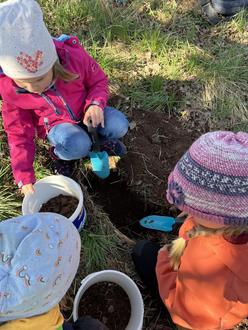Am 08. April tauchte die 1. Klasse zusammen mit Alex und Lukas vom Haus der Schwarzen Berge hinab in die Erde und erforschte das Leben der Regenwürmer. Dabei erfuhren wir erstaunliche Dinge: Ein Regenwurm hat 5 Paar Herzen. Es stimmt aber nicht, dass man ihn teilen kann und er dann weiterlebt. Er wird mit 2 Jahren erwachsen. Dann hat er auch den sogenannten Gürtel ausgebildet, den er zur Fortpflanzung braucht. Er kann bis zu 8 Jahre alt und bis zu 30 cm lang werden. Wir gruben vorsichtig in der Erde und fanden viele Regenwürmer vom Baby bis zum ganz großen Erwachsenen. Wir wollten beobachten, wie die Regenwürmer die Erde bearbeiten und durchlüften. Dafür füllten wir Sand und Erde in einzelnen Schichten in ein hohes Einweckglas. Danach setzten wir unsere gesammelten Regenwürmer in das Glas und legten Gras und Blätter dazu. Ganz vorsichtig wurde noch etwas Wasser hineingesprüht. „Die Regenwürmer brauchen Feuchtigkeit, damit sie über ihre Haut atmen können.“, erklärte uns Alex. Das Glas stellten wir dann in unseren Wandschrank im Klassenzimmer, weil die Regenwürmer Dunkelheit gewöhnt sind. Jeden Morgen nahmen wir das Glas heraus und prüften, ob die Regenwürmer die Schichten schon vermischt hatten. Nach einigen Tagen, waren die oberen Schichten nicht mehr zu erkennen. Der Tag mit Alex und Lukas war toll und wir freuen uns schon, dass die beiden mit uns auch die Wiese erkunden werden.