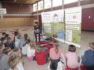 Mit Hilfe einer wunderbaren Geschichte von Emmi und Max erfuhren die Kinder der 1. und 2. Klasse spielerisch und kindgerecht den Umgang mit einer Notfallsituation.