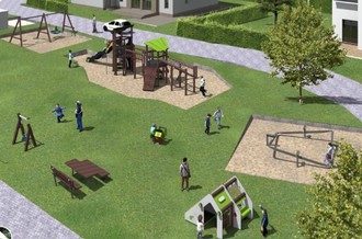 Mit einem Spielhaus findet sich auch für die Kleinsten ein abwechslungsreiches Angebot. Darüber hinaus wird eine zweisitzige Federwippe installiert. Eine Sitzgruppe mit Tisch und zwei Bänken soll Familien zum Verweilen einladen und das ein oder andere Picknick möglich machen.
