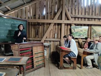 Natürlich mussten die Teilnehmer in der historischen Schulstunde um 1930 Fräulein Emilies Unterricht „artig“ folgen. Eng saß man auf den Schulbänken nebeneinander, musste beten, singen und in kurzer Lernzeit ein Gedicht aufsagen.