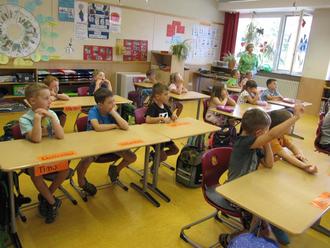 Konzentriert und aufmerksam lauschten 18 zukünftige Erstklässler den Worten, die Frau Zehe ihnen vortrug. Auf lustige Weise erfuhren die Kinder was in der Schule gelehrt und gelernt wird. So kam man schnell miteinander ins Gespräch. Eifrig bastelten sich alle noch ein Lesezeichen mit den Figuren aus der Geschichte, bevor sie gemeinsam mit Frau Zehe zu einem Rundgang durch das Schulhaus aufbrachen. Neugierig schauten die Schulanfänger sich in allen Räumen um und bekamen so einen ersten Eindruck von ihrem zukünftigen Lernumfeld. Besonders beeindruckt waren sie von der großen Turnhalle, wo sie gleich mal lärmen und toben durften.