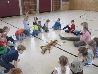 Nachdem die Kinder zunächst in der Turnhalle auf spielerische Art und Weise erfahren haben, wie so eine Wiese vor vielen Tausend Jahren überhaupt entstanden ist, durften die Schüler mitgebrachte Felle und Knochen von Wiesenbewohnern ertasten und bestaunen. Anschließend ging es raus auf die schuleigene Wiese, um Schnecken zu suchen.