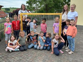 Danach folgte der große Rauswurf. Die Türe des Kindergartens wurde weit geöffnet und jedes einzelne Kind wurde liebevoll von zwei Erzieherinnen "rausgeworfen".