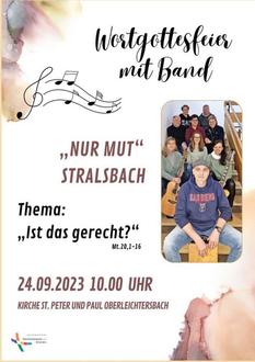 Unter diesem Thema findet am Sonntag, 24.09.2023 um 10 Uhr in Oberleichtersbach eine Wortgottesfeier mit der Band „Nur Mut“ aus Stralsbach statt.