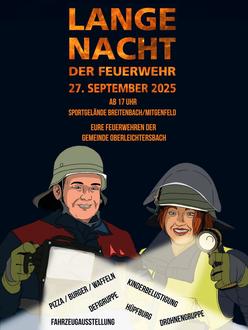 Breitenbach – Am Samstag, den 27. September, wird das Sportgelände in Breitenbach ab 17:00 Uhr zum Treffpunkt für alle Generationen: Die Gemeinde Oberleichtersbach macht mit bei der bayernweiten Langen Nacht der Feuerwehr – mit einem bunten Programm für Groß und Klein.