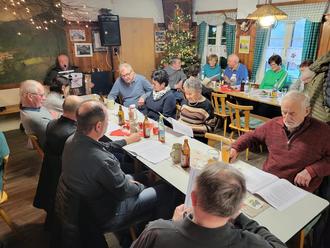 Gemeinsam Lieder aus der Heimat zu singen hat was. Diese Erfahrung durften die zahlreichen Gäste in der Wanderhütte Herrgottswinkel nach dem geselligen Jahresabschlusstreffen des Frankenwaldvereins machen. Vorsitzender Mario Stöcker freute sich über das voll besetzte Wanderheim und konnte besonders Heimatfreunde aus Steinwiesen und Neufang begrüßen, die alljährlich gerne dem Treffen beiwohnen. Wichtigster Mann für das Gelingen der Veranstaltung war aber unser Musiker Hans Gleich, der mit seiner Tasten-Steirischen gekonnt die Melodien zu den Liedern aus dem neuen Gesangsheft des Frankenwaldvereins beitrug. Mehr als drei Stunden lang durften sich die Gäste ihre Lieblingsstücke wünschen und es wurde kräftig mitgesungen und geschunkelt. Ob „Tief im Frankenwald“, das „Oberfrankenlied“ oder „Im grünen Walde“, die Lieder waren vertraut und alle stimmten mit ein. Die heimelige Atmosphäre der Hütte und die gute Bewirtung von Hilde und Karin Gleich trugen zudem zum Gelingen teil.