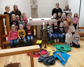 Für die Bewohnerinnen und Bewohner des Alten- und Pflegeheims „St. Elisabeth“ veranstalteten die Kindergartenkinder, gemeinsam mit ihren Erzieherinnen und Pfarrer Krauter eine Kreuzwegandacht. Die vielen Bewohnerinnen und Bewohner des Hauses, die sich in der Kapelle eingefunden haben, freuten sich sehr über den Besuch und so wurde in 7 Stationen das Leiden und Sterben Jesu Christi zelebriert. Es wurde eine buntgestaltete Osterkerze entzündet, die alle Anwesenden auf dem Kreuzweg begleitete. Die Kinder brachten verschiedene Utensilien vor zum Altar und legte sie zum Gedenken dort ab, u.a. wurden in Erinnerung an den Einzug in Jerusalem kleine Palmbüschel vorbereitet. Das Team des Kindergartens bedankte sich bei Pfarrer Krauter für die gute Zusammenarbeit, beim Personal des Pflegeheimes, sowie bei allen Anwesenden. Nach der Andacht bekam jeder Gast der Andacht ein kleines Andenken an diesen Kreuzweg. Auch seitens des Pflegepersonals gab es für jedes Kind etwas Süßes.