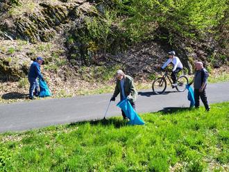 Bei laufendem Betrieb auf dem Radweg wurde die Strecke durch das Tal der Wilden Rodach von den fleißigen Helfern gereinigt.