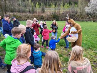 Ein kleines Jubiläum war die diesjährige Ausgabe der Ostereiersuche, die seit vielen Jahren gemeinsam von Frankenwaldverein und Fußballclub Wallenfels veranstaltet wird. FC-Vorsitzender Andreas Buckreus erinnerte mit etwas Stolz an den ersten Termin vor genau 25 Jahren, der auf dem Gelände des FCW stattfand. Auch heuer war der Andrang groß, als der Startschuss für die Ostereiersuche gegeben wurde. Mehr als 40 Kinder im Alter bis etwa zwölf Jahren waren gekommen, um die vom Osterhasen gut am Campingplatz versteckten Eier und weitere Süßigkeiten zu finden. Zur Überraschung aller kam dann tatsächlich auch noch der echte Osterhase (gespielt von Andreas Buckreus) zum Gelände an der Wilden Rodach und überreichte jedem Kind persönlich ein Überraschungsei. Die Familienwarte vom FWV, Dr. Christine Müller-Hümmrich und Miriam Schirmer freuten sich über die große Resonanz unter den jungen Familien und auch Großeltern, die mitgekommen waren.