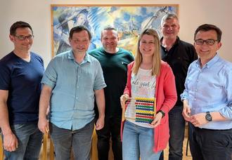 Kämmerin Stefanie Hanisch wurde bei Ihrer ersten Stadtratssitzung von den Fraktionsvorsitzenden Christian Stumpf (CSU), Andreas Buckreus (SPD) und Marco Fischer (Freie Wähler) sowie Bürgermeister Jens Korn und Geschäftsleiter Christoph Hohlweg herzlich begrüßt.