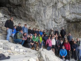 Die Reisegruppe aus Neuengrün und Wolfersgrün vor dem Eingang der Eisriesenwelt