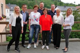 Die Lebensretter aus Wallenfels zusammen mit Stellv. BRK-Kreisvorsitzender Annette Schneider (re) und stellv. BRK-Kreisgeschäftsführerin Carina Kotschenreuther (li), Bürgermeister Jens Korn (2.v.li) und Nico Schlee von der Wasserwacht (3.v.re)