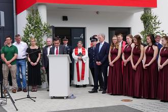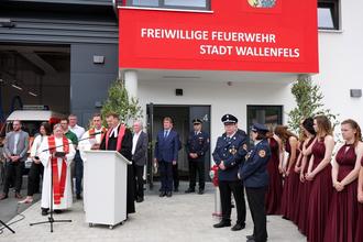 Der Kommandant der Freiwilligen Feuerwehr, Ronny Reuther, bezeichnete das neue Feuerwehrgerätehaus als Symbol für Einsatz und Gemeinschaft. Nun ist dies ein Ort, in dem nicht nur die Ausrüstung gelagert wird, sondern man übt gemeinsam, tauscht sich aus und bereitet sich auf die Aufgabe, den Schutz der Bevölkerung, optimal vor. Es ist alles da, Platz für die Fahrzeuge, moderne Umkleide- und Schulungsräume, Raum für Jugendfeuerwehr, Werkstätten und Büro. „Es ist ein Ort der Begegnung und des Miteinander, an dem wir uns als Feuerwehr-Team weiterentwickeln können“, betonte der Kommandant. Er dankte allen, die daran mitgewirkt haben, von der Idee an bis zur Fertigstellung, vor allem der Stadt Wallenfels und dem Landkreis Kronach mit Landrat Klaus Löffler. Aber auch allen Firmen, Spendern, Freunden und Gönnern und dem Feuerwehrverein für ihren Einsatz und ihre Unterstützung. Und getreu dem Leitspruch der Feuerwehr „Gott zur Ehr, dem nächsten zur Wehr“ dankte er vor allem Gott für den Schutz auch während der langen Planungs- und Bauphase.