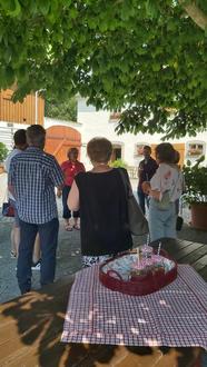 Im Anschluss gab es im romantischen Innenhof eine kleine Brotzeit, Kaffee und selbstgebackenen Kuchen und Gelegenheit mit dem Gastgeber Erfahrungen auszutauschen.
