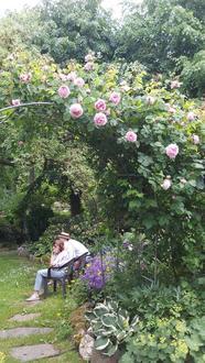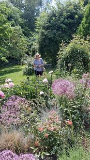 Hier erwartete die Teilnehmer eine üppige Blütenpracht: Staudenbeete mit Clematis, Nelken, Pfingstrosen, Lavendel, Storchenschnabel, immer wieder blühende und duftende Rosen: wunderschön!