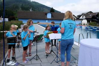 Die Bläserklasse umrahmte musikalisch die Eröffnung des sanierten Beckens
