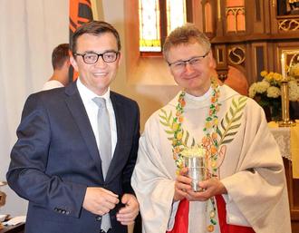 Lieb war er ihnen geworden, der sanfte Pater Jan Poja CR, der in den letzten 11 Jahren in der Pfarrei St. Thomas in Wallenfels gewirkt hat. Egal ob in der Stadtpfarrkirche oder in den Pfarreien und Kuratien Neuengrün, Wolfersgrün und der Schnaid, nicht zu vergessen das Alten- und Pflegeheim St. Elisabeth. Es war manchmal eine nicht einfache Zeit, in den letzten Jahren gab es einige Skandale und schwarze Wolken über der Pfarrei, aber es waren auch schöne, humorvolle Jahre, die Pater Jan mit den vielen Ehrenamtlichen und den Ministranten und seinen ganzen Pfarrkindern verbracht hat. Und so schwang beim Festgottesdienst zur Wallenfelser Kirchweih eine große Portion Wehmut mit. Der Geistliche war elf Jahre als Pfarradministrator der katholischen Pfarrgemeinde St. Thomas tätig und tritt nun am 1. September seine neue Stelle in Hl. Geist, Bayreuth an. Mit seinem Weggang endet für die Pfarrei die seit 1595 ungebrochene Tradition, dass ein Pfarrer in der Gemeinde wohnt und gleichzeitig seinen Dienst verrichtet. Die Vertreter von Stadt und Pfarrei sprachen Poja ihren Dank für sein Wirken aus, nahmen schweren Herzens Abschied und wünschten „ihrem“ Pfarrer alles Gute für seinen weiteren Weg.