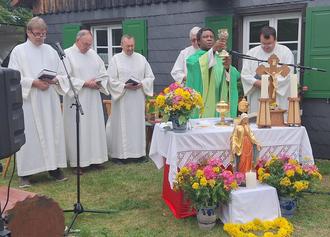 Die Bergmesse beim Wallenfelser Herrgottswinkel wurde von der derzeitigen Urlaubsvertretung im Rodachtal, Pfarrer Eusebius, zelebriert.