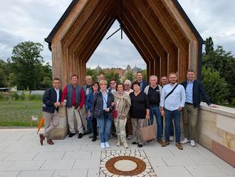 „CSU on Tour“, unter diesem Motto besuchte der Wallenfelser Ortsverband den Markt Mitwitz. Bürgermeister Oliver Plewa führte die Gruppe gemeinsam mit Altbürgermeister Hans Peter Laschka durch den Ortskern. Im Fokus standen dabei vor allem die Maßnahmen des Marktes im Rahmen der Stadtsanierung. So ist vor wenigen Jahren der westliche Ortseingang deutlich aufgewertet worden. An die Stelle einer früheren Korbwarenfabrik ist nun ein Aussichtspunkt getreten, der einen beeindruckenden Blick auf das Wasserschloss bietet. An zentraler Stelle steht statt eines Leerstandes die sogenannnte „Neue Mitte“, ein Platz zum Aufenthalt, an dem ein Holzpavillion der absolute Hingucker ist. Sehr naturnah wurde der Spielplatz am Grünen Band gestaltet.