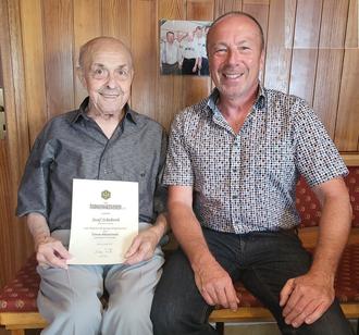 Seit etwas mehr als 50 Jahren ist Josef Schuberth ein treues Mitglied im Frankenwaldverein. Obmann Jürgen Schlee nutzte die Feier anlässlich dessen 90. Geburtstages, um Josef Schuberth für seine langjährige Verbundenheit zu ehren. Mehr als drei Jahrzehnte gehörte der Jubilar dabei dem Vereinsausschuss an und brachte sich bei allen Aktivitäten ein. Vor allem seine Tätigkeit als Wegewart verdient Lob. Jürgen Schlee überreichte Josef Schuberth eine Dankurkunde und das Ehrenzeichen des Frankenwaldvereins. Seitens der Stadt Wallenfels überbrachte dritter Bürgermeister Andreas Buckreus die herzlichsten Glückwünsche.