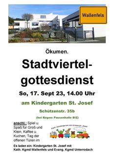 | 14.00 | Stadtviertelgottesdienst, Wallenfels,Am Kindergarten St. Josef, Schützenstraße 35b |