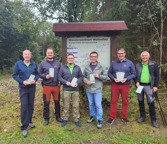 Die Ehrengäste der Eröffnungsveranstaltung aber auch die Verantwortlichen der Wallenfelser Ortsgruppe zeigten sich erfreut über die Fertigstellung des neuen Wanderweges. Von links: Jürgen Schlee, stellvertretender Vorsitzender Florian Lutz, Vorsitzender Mario Stöcker, Bürgermeister Jens Korn, Hauptvorsitzender Roland Wolfrum und Michael Stöcker.