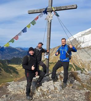 Jan Nürnberger, Daniel Richter und Florian Lutz auf dem Gipfel des Hahnkampl