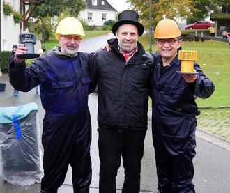 Wasserknappheit im Oberen Rodachtal? Gibt es nicht, man hat doch die Ködeltalsperre, oder etwa nicht? Verwirrend ist es schon, dass aus dem Neuengrüner Dorfteich auf einmal der Turm der Ködeltalsperre herausragt. Und es fehlt an Wasser, die „Neuengrüner Ködeltalsperre“ hat nicht genügend des flüssigen Stoffes. Um den Dorfteich nun vor dem klimabedingten Austrocknen zu bewahren, wurden zwei Superarbeiter eingeflogen, die in mühevoller, sehr anstrengender Arbeit und unter nicht gerade trockenen Verhältnissen den Dorfteich retten sollten. Und da kamen sie, Bürgermeister Jens Korn, der vor Energie nur so strahlte und Gemeindereferent Andreas Roderer, der seinen Sieg von letztem Jahr natürlich verteidigen wollte. Voller Elan und Arbeitswillen, gekleidet in Overall und mit Schutzhelm machten sie sich an die Aufgabe, bei strömenden Regen Wasser in den Dorfteich zu bringen. Los ging es mit einem Parcours durch den angrenzenden Spielplatz, den man mit einer Schubkarre voller Wasser, einer „Rowelln“ bewältigen musste, Hügel rauf und runter, über eine Wippe und ein Paletten Hindernis zum Zugang zum Wasserturm. Mit Eimern mussten die Fallrohre dann gefüllt werden, wessen Ball als erstes aus dem Rohr geschwemmt wurde, hatte gewonnen. Vier Runden brauchten die Kontrahenten, um genügend Wasser herbeizuschaffen. Doch dann hatte Bürgermeister Jens Korn die Nase, pardon den Wassereimer, vorne und fuhr nach jahrelangem Warten endlich wieder einen Sieg am Kirchweihmontag in Neuengrün ein. Nach dem obligatorischen „Bad im Dorfteich“ konnte Korn glücklich den goldenen Turm in Empfang nehmen, Andreas Roderer musst sich leider mit dem silbernen Turm zufriedengeben. Aber das nächste Kirchweihmontagsspektakel kommt bestimmt und dann werden die Karten neu gemischt.