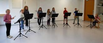 Die Bläserklasse der Musikschule am Bildungszentrum begrüßte die neue Schulleitung musikalisch.
