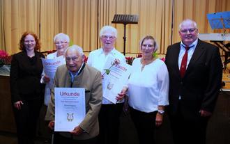 Weitere Ehrungen für passive Mitglieder und aktive Sänger und Sängerinnen konnten die Vorsitzenden durchführen. Außerdem dankten sie allen Sängerinnen und Sängern für die tollen Auftritte.