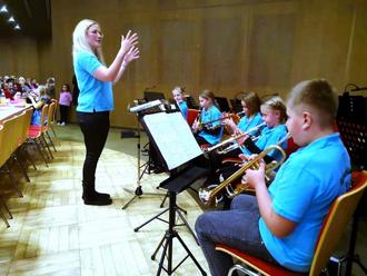 Die Bläserklasse der Musikschule unter der Leitung von Yvonne Deckelmann