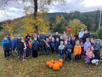 Bevor es losgehen konnte, scharten sich die kleinen Halloween-Fans am Herrgottswinkel zu einem Gruppenfoto.