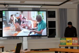 Aufgeteilt in verschiedene Bereiche begannen die Autoren Franz Behrschmidt, Annegret Hümmrich-Korm, Jens Korn, Anna-Lena Müller, Dieter Müller, Werner Stumpf und Thomas Weiß zu recherchieren. Das Stadtarchiv, alte Aufzeichnungen, Kirchenbücher, Stadtchronik und mündliche Erzählungen wurden gesichtet, sortiert, gesammelt, zusammengetragen und schließlich zusammengesetzt. Anna-Lena Müller berichtet, wie schwer es war, die Aufzeichnungen in altdeutscher Schrift zu entziffern. Am Ende liefen die Fäden bei Thomas Weiß zusammen, der für die technische Aufbereitung zuständig war und sich mehr als einmal die Haare raufte. Angefangen haben die Arbeiten mit der Idee bei der Jahreshauptversammlung im August 2022, das erste Treffen war dann im Februar 2023, danach begann die Arbeit, die nun mit der Buchvorstellung ihren Abschluss und Höhepunkt gefunden hat. Unter den Klängen der Europahymne, von Maik Förner mit der Panflöte interpretiert, präsentierte Franz Behrschmidt schließlich das vollendete Werk.