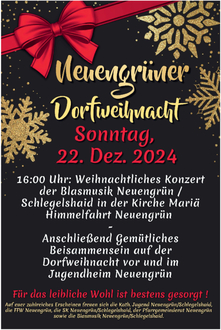 Auch in diesem Jahr laden unsere Wallenfelser Sänger und Musikgruppen am 2. Adventssonntag zum Adventskonzert in der Pfarrkirche und möchten Ihre Zuhörer mit weihnachtlichen Liedern und Melodien auf die Vorweihnachtszeit einstimmen. In diesem Jahr wirken mit: der Musikverein Wallenfels, der Ministrantenchor, die „angels“, Markus Werner an der Orgel, Maik Förner (Panflöte), der Gesangsverein „Cäcilia“ Wallenfels, sowie Franz Behrschmidt, der die Zuhörer zwischen den Darbietungen mit besinnlichen Texten zur Weihnachtszeit zum Nachdenken anregen möchte. Das Konzert beginnt um 15.30 Uhr. Der Eintritt ist frei, die Veranstalter freuen sich jedoch über freiwillige Spenden, die unserer Pfarrei St. Thomas zu Gute kommen. Die gesamte Bevölkerung ist hierzu recht herzlich eingeladen.