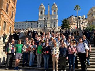 Die Rompilger aus dem Seelsorgebereich Frankenwald auf der Spanischen Treppe, im Hintergrund die Kirche Santa Trinita