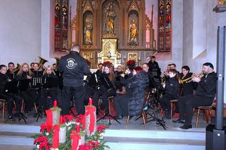 Gewaltig und dominierend hallte das Orgelspiel von Markus Werner zu Beginn des Konzertes mit dem „Präludium und Fuge d-moll“ durch die Kirche, ebenso im zweiten Teil das Präludium und Trio „Es kommt ein Schiff geladen“. Ein Erlebnis für die kleinen Sänger genauso wie für die Zuschauer war der Auftritt der Angels Kids unter der Leitung von Andrea Hader. Hell leuchteten die glitzernden Shirts und mit ihren Liedern „Fröhliche Weihnacht überall“, „Merry Christmas“ und „Frohe Weihnacht“ zauberten sie kleine Tränen in die Augen der Zuhörer. Die „großen“ Angels unter der Leitung von Julia Bauer ließen ihre Stimmen von der Empore aus erklingen mit dem großartigen Lied von Peter Maffay „Nessaja“ und brachten den Nikolaus mit „Santa Claus is coming in town“ sozusagen „in die Kirche mit“. Einige neue Lieder hatte der Ministrantenchor im Repertoire. „Is this the World wie Created“, „Wenn der Frieden zerbricht“ und „Ein großes Licht geht auf“ luden zum Nachdenken ein. Katrin Werner hatte hier die Leitung. Hoch herab von der Orgel erschallten die Stimmen des Gesangverein Cäcilia unter Leitung von Julia Bauer. „Für alle“, „Mich hat der Flügel eines Engels geküsst“ und „Weihnachten bin ich zu Haus“ erfreuten die Zuhörer. Der Musikverein Wallenfels unter der Leitung von Andreas Pratsch hatte diesmal Lieder ausgesucht, die auch in ihrer Ruhe gut zum Advent passen. In „My Dream“ von Peter Leistner trifft Blasmusik auf Popballade, es ergibt eine traumhafte, vom Flügelhorn vorgestellte Melodie, die durch das ganze Orchester wandert. Auch das Liebeslied „The book of Love“ aus dem Jahr 1999 passt gut in diese Zeit, ebenso wie das verträumte Werk „The Seal Lullaby“.