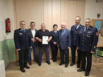 Die Auszeichnung für Werner Wich, der das Feuerwehr-Ehrenzeichen erster Klasse in Gold für seine besonderen Verdienste um das Feuerlöschwesen erhielt, nahmen Kreisbrandrat Frank Fischer und der weitere Stellvertreter des Landrats, Bernd Steger, vor. Fischer ging auf den Werdegang von Wich ein und nannte dabei unter anderem dessen Beförderungen zum Ober- und Hauptfeuerwehrmann. In zeitlichen Abständen legte Wich ab 1986 fünf Leistungsprüfungen von der Stufe I bis III/3 ab. Auf Werner Wich sei aber nicht nur im Feuerwehrdienst Verlass gewesen, sondern auch bei gesellschaftlichen Veranstaltungen, wo er stets mit angepackt habe und dabei vor allem die Braterei zu seinem Steckenpferd geworden sei. Verbunden mit der Ehrung war auch ein Gratisaufenthalt im Feuerwehrerholungsheim in Bayerisch Gmein.