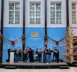Der Auftritt einer Fränkischen Blaskapelle in der Bayer. Landesvertretung in Berlin ist wohl eher eine Seltenheit. Auf Einladung unseres Bundestagsabgeordneten vom Stimmkreis Kronach-Coburg-Geroldsgrün Dr. Jonas Geissler spielte die Blasmusik Neuengrün/Schlegelshaid dort auf besonderen Wunsch u.a. den "Frankenlied-Marsch und sorgte zusammen mit den Langenbacher Volksmusikanten für beste Stimmung.