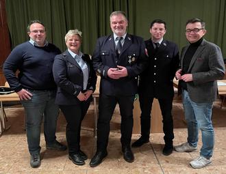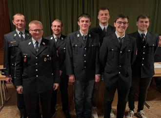 Nach dem Bericht der Schriftführerin und des Kassiers folgte der Bericht des Kommandanten. 1. Kommandant Daniel Hoch begrüßte die Feuerwehrkameradinnen und -kameraden und freute sich über den Neueintritt von David Wiedel. Was die Einsatzstatistik angeht, so konnten 5 Einsätze „THL-Baum über Straße“ verzeichnet werden. Insgesamt wurden 7 Monatsübungen abgehalten. Anschließend nahm der 1. Kommandant Beförderungen im aktiven Feuerwehrdienst vor.