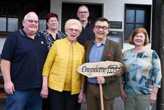 Ihr erster Mann Walter war hier mit ihr auf einer Wellenlänge. „Wir sangen in den 50er Jahren Operetten und mussten dabei immer ein Liebespaar spielen“, erinnert sich die Jubilarin. Sie heirateten und bekamen die Töchter Maria und Ursula. Leider verstarb Walter schon 1982. Aber durch die Musik lernte sie auch ihren zweiten Mann Arno kennen und lieben. Auch er war wie schon der verstorbene Walter im Gesangverein und man kannte sich. Arno war ebenfalls verwitwet und stand mit seinen Söhnen Uwe und Bernd allein da. Und so wurden sie eine „Patchwork Familie“ wie man heutzutage sagen würde. „Die beiden Jungs haben gesagt ‚Papa wir brauchen eine Frau und eine Mutter“ und da haben sie mich ausgesucht“, lacht Lenchen Eger. Auch ihre beiden Töchter Maria und Ursula waren einverstanden und so hat sie 1983 ins Gasthaus „Egersmühle“ ‚eingeheiratet’. Ihrem Gesangverein bleibt Helena Eger auch weiterhin treu, „so lange es geht“, denn ohne Gesang kann sie sich ein Leben nicht vorstellen. Ein weiteres Highlight in ihrem Leben war das Feuerwehrfest 1953, wo sie als Ehrendame stolz repräsentierte. Auch im letzten Jahr beim 151. Jubiläum war sie dabei, fuhr sogar als Ehrengast im Caprio mit und zeigte stolz ihre Schärpe „Ehrendame 1953“.