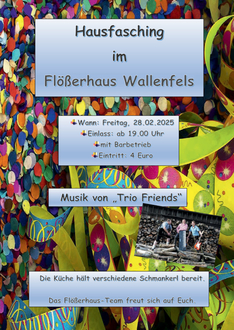 Für den Faschingsumzug wird noch Auswurfmaterial gesucht. Wer Sekt, Schnaps, Bier, Süßigkeiten oder sonstige Sachen hat und für diese keine Verwendung findet, bzw. den FC Wallenfels unterstützen will, kann sich bei Roland Querfurth Tel. 8379 melden. Die Sachen werden abgeholt und beim Faschingsumzug an die Teilnehmer und Besucher verteilt. Danke für eure Unterstützung.