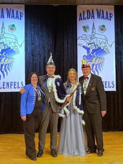 Carolin Wicklein (li) erhielt den Verdienstorden des Fastnachtsverbandes Franken. Mit im Bild Beirat Wieland Beierkuhnlein und das Prinzenpaar der Wallnfelse Fousanoacht, Prinz Andreas II. und Prinzessin Selina I.