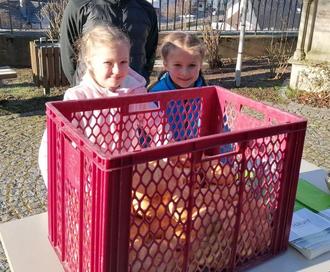 Anni und Jana übernahmen spontan das Verteilen der Semmeln vor dem Gottesdienst