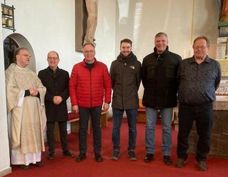 v.l. Pfarrer Reis, Dietmar Wiedel, Josef Wolf, Patrick Ströhla, Marco Fischer, Herman Küpferling (Kirchenpfleger)