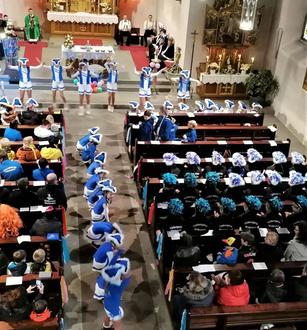 Bereits die Begrüßung wird in Reimform vorgetragen. Musikalisch begleitet wurde der Faschingsgottesdienst von den kleinen angels und von Maik Förner und seiner Panflöte. „Arbeiten“ mussten die Prinzenpaare und trugen zusammen mit einem Ministrant und einem Gardemädchen die Fürbitten vor. Nach der Geschichte „der Ire vor Gottes Thron“ und der Predigt von Pater Jan zeigte die Kindergarde einen Gardetanz. Es war eine tolle Stimmung in der Kirche, geprägt von Gebet, Dank und Fröhlichkeit. Und es zeigt sich, dass Fasching, Fastnacht, Karneval kein Gegensatz zur Kirche sein muss. Gemeinsam lachen und fröhlich sein, das ist das Geheimnis eines Narren und genauso eines Christen.