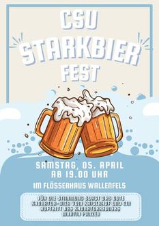 Die CSU Ortsverbände Wallenfels und Neuengrün laden am Samstag, 5.4., zum Starkbierfest ins Flößerhaus Wallenfels ein. Ab 19 Uhr wird dort der Kronator Doppelbock der Brauerei Kaiserhof fließen. Mit seinen 7,5 Volumen-% wird er allerdings nicht alleine für die gute Stimmung zuständig sein. Es ist gelungen, Martin Panzer als Starkbier-Redner zu gewinnen. Er ist der Kopf hinter dem erfolgreichen Derblecken in der Kreisstadt und wird bei seinem Auftritt Aktuelles aus der großen aber auch der lokalen Politik auf´s Korn nehmen. Für´s leibliche Wohl sorgt das Flößerhaus-Team.