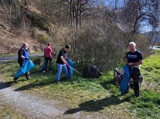 Die weiteren Helfer, die von Frankenwaldverein und den Bärenstarken Typen gestellt wurden, kümmerten sich um den Radweg entlang der Wilden Rodach. Auf der Strecke von Erlabrück bis Schnappenhammer wurde der gerne von Radfahrern und Wanderern genutzte Weg vorwiegend von Verpackungsmaterial und Getränkeflaschen gereinigt. Aber auch die Spielplätze im Stadtgebiet und das Umfeld der Silberberghütte wurden auf Vordermann gebracht. Bei der abschließenden Brotzeit im Flößerhaus, zu der Bürgermeister Jens Korn eingeladen hatte, wurde mit Bedauern festgestellt, dass im Vergleich zu früheren Jahren die Müllmenge wieder deutlich mehr geworden ist. Problemzonen bleiben der Parkplatz an der B 173 auf Höhe Silberberg und dessen Umfeld sowie der Parkplatz an der Kreisstraße oberhalb des Sportplatzes. Hier hinterlassen immer wieder Reisende und LKW-Fahrer rücksichtslos ihren Abfall in freier Natur. Unter anderen wurden volle Farbeimer, eine Mikrowelle und eine Gartenliege gefunden.