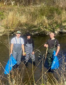 Die jungen Feuerwehrler Kilian Meier, Fabio Klein und Leon Piwonski (von links) reinigten bei niedrigem Wasserstand die Wilde Rodach.