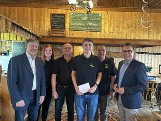 v.l. Bgm. Gerhard Wunder, 2.Dir. Carolin Kremer, 1.Vorstand Alfred Kremer, Jonas Deuerling, Dir. Wolfgang Schrepfer, Bgm. Jens Korn